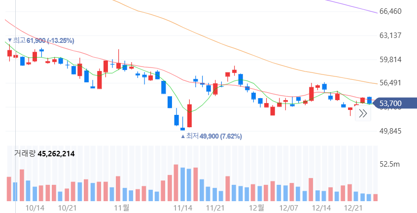 - 지지선: 하락한 주가를 지탱해주는 가격대. 주가가 하락하다가 멈추고 반등하는 지점입니다. 이 선은 투자자들이 "이 가격대는 싸다"고 판단해 매수세가 강해지는 구간을 나타냅니다.