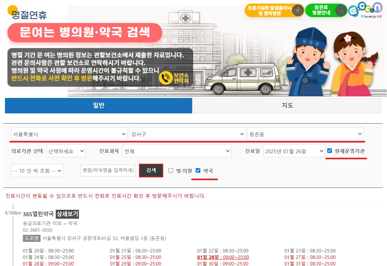 설연휴 문여는 약국, 휴일 문여는 약국 찾기