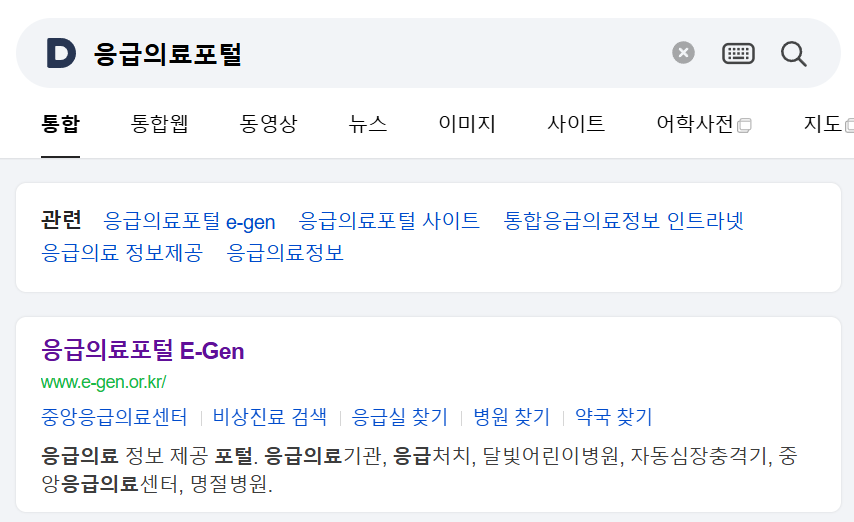 - 접속하기: 인터넷 브라우저에서 `http://www.e-gen.or.kr`를 입력해 접속합니다. 검색창에 '응급의료포털'로 검색하면 금방 찾을 수 있습니다.