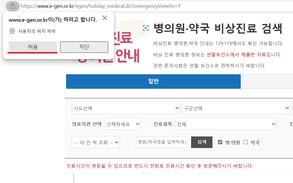 - 사용자의 위치를 파악하는 메시지 창이 뜬다면 수락해 주세요.