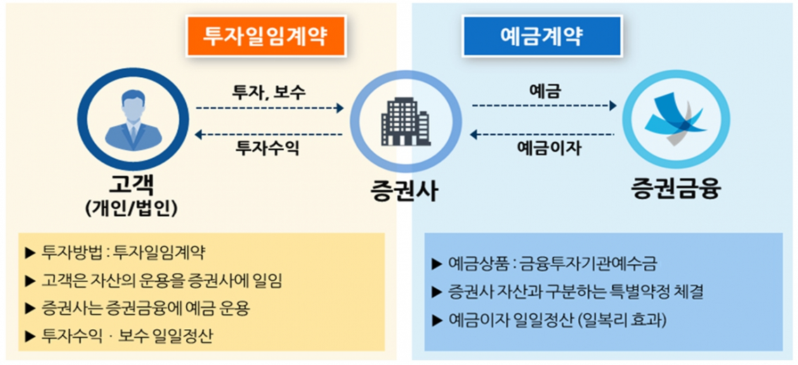 - 증권사가 공채, 은행채 등 안전한 RP(환매조건부 채권)에 투자하여 발생한 수익을 고객에게 지급합니다.